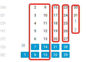 2. Выходные и праздники
