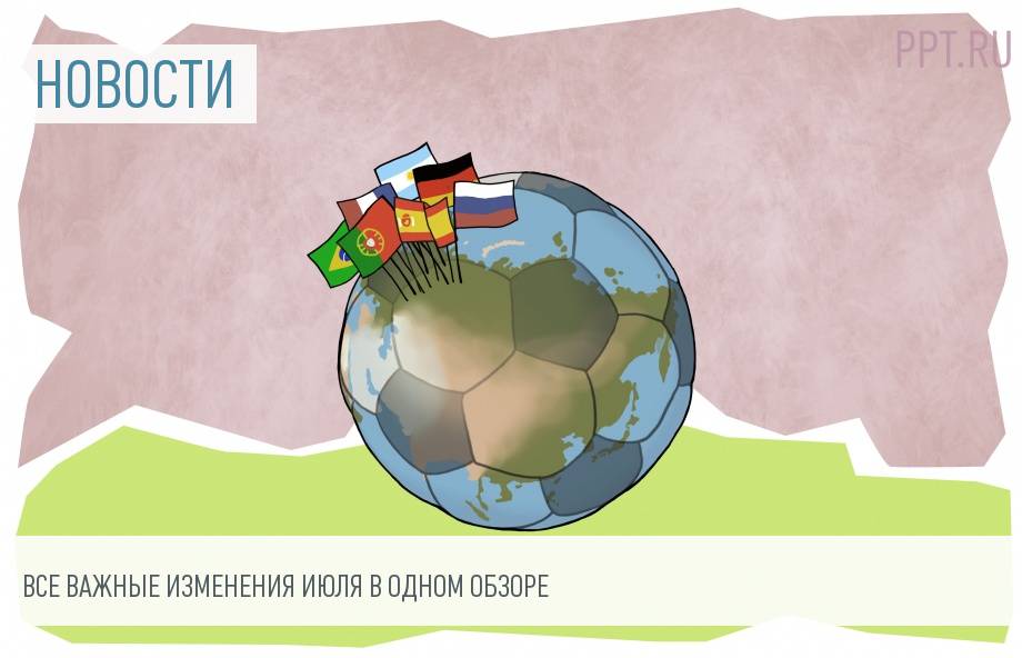 13 июля 1930 года в столице Уругвая Монтевидео состоялся матч открытия первого Чемпионата мира по футболу. Июль 2018 года принесет закрытие очередного мундиаля, который проходит в России. Однако на этом важные события середины лета не заканчиваются. Россиян ждет подорожание услуг ЖКХ, переход на новые бланки полисов ОСАГО, окончательный переход на работу с онлайн-кассами и практическое внедрение пакета Яровой мобильными операторами. Об этих и других важных событиях — в обзоре PPT.ru.