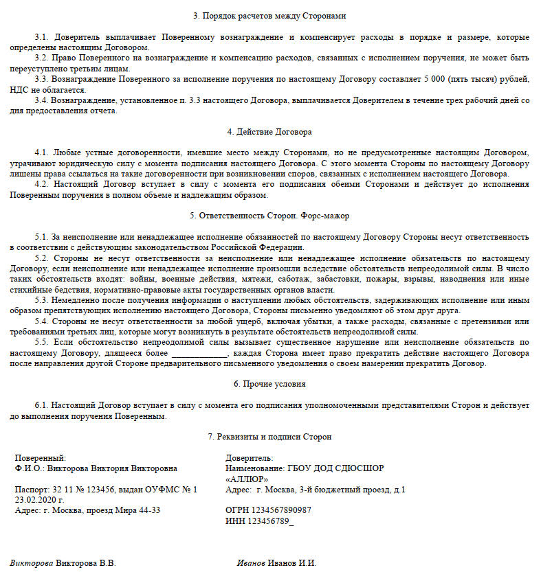 Возникают ситуации, когда представитель оказывает услуги на платной основе или с особыми условиями. Для правового закрепления услуг стороны составляют договор поручения. Рассказываем, что такое договор поручения и как его оформить.