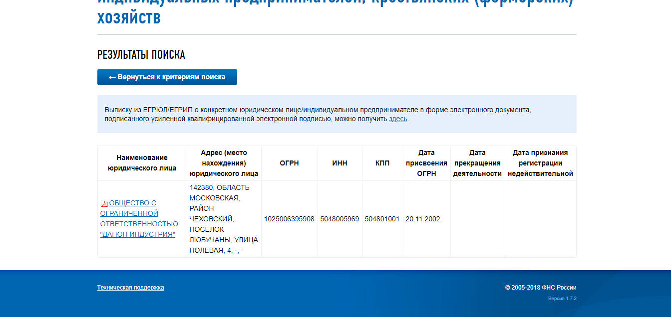 - Для проверки вводим данные компании на сайте ФНС и получаем нужную информацию.