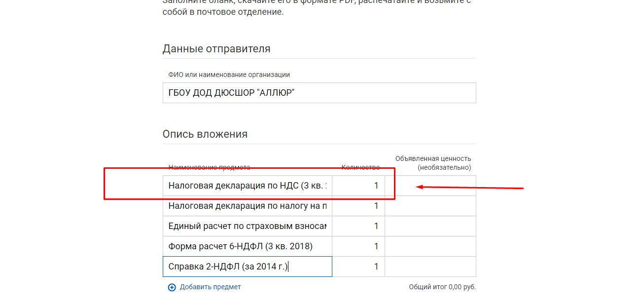 Для подтверждения, что содержимое письма, бандероли, посылки не изменилось, следует заполнить онлайн опись вложения в ценное письмо, бандероль или посылку.