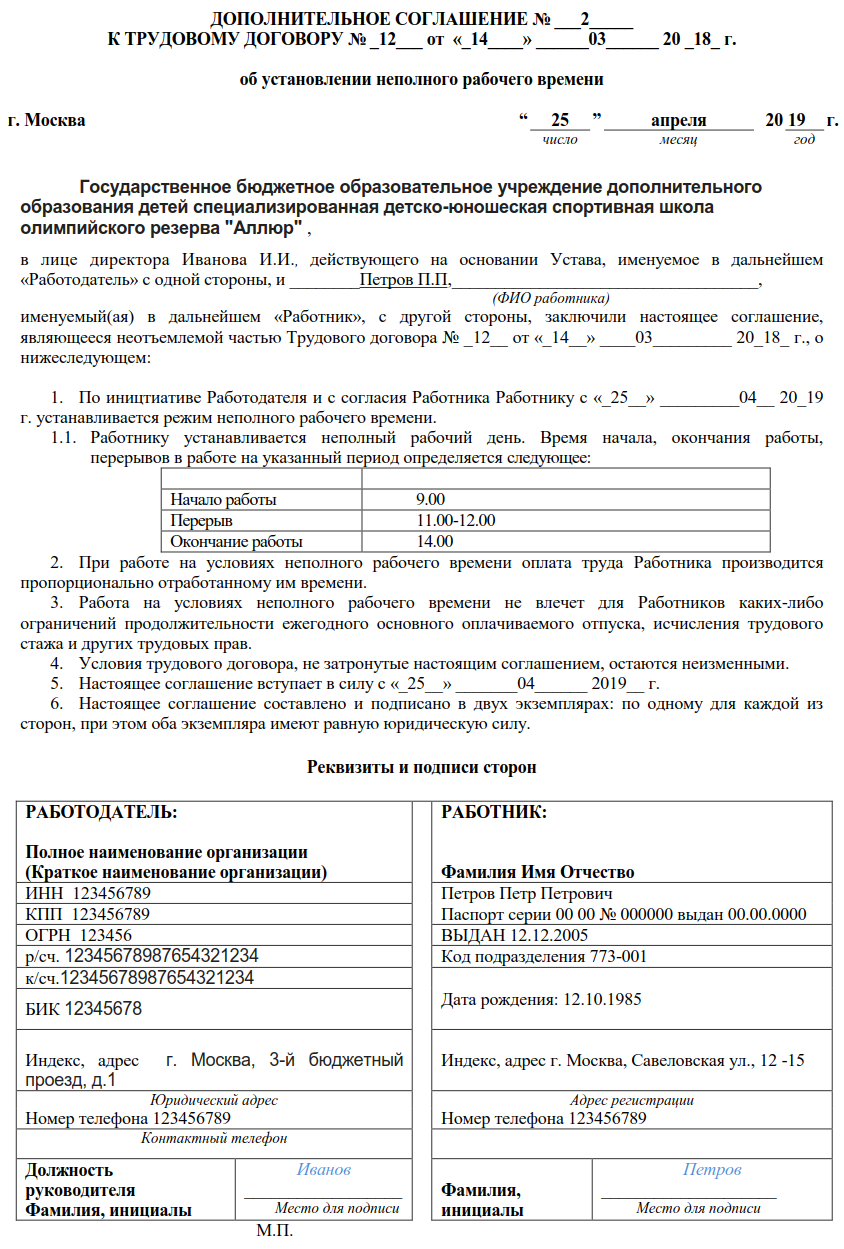Как составить допсоглашение о переходе на 0,5 ставки