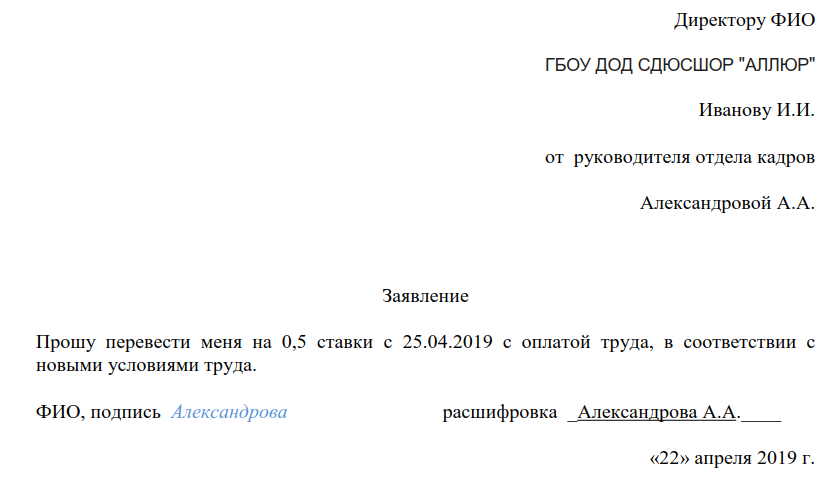 Как составить заявление о переходе на 0,5 ставки