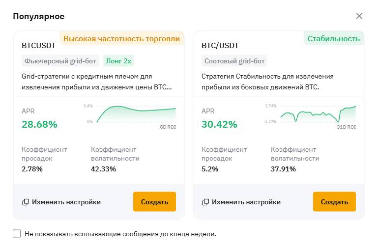 - Не копируйте чужие стратегии без понимания. На платформе можете найти популярные шаблоны и параметры, которые уже использует много пользователей. Но даже если стратегия у кого-то сработала — это не значит, что она подойдёт вам. Обязательно проверяйте параметры, ограничивайте убытки и корректируйте настройки под свой режим торговли.