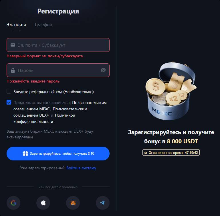 Процесс регистрации на MEXC стандартный: почта, пароль, подтверждение. Я сразу включил двухфакторную аутентификацию и прошёл базовую проверку личности. Без этого копитрейдинг работать не станет — биржа требует хотя бы начальную верификацию.