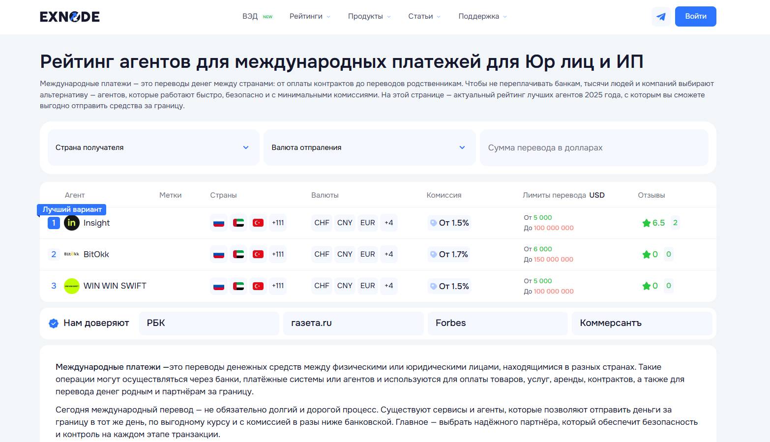 Сам я работаю с такими платформами каждый день и вижу, как быстро и аккуратно решаются задачи, которые раньше вызывали сложности. Подобрать платёжного агента можете самостоятельно или через наш агрегатор Exnode — это экономит время и позволяет сравнить условия.