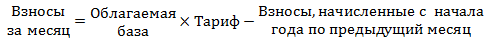 Начисляются взносы ежемесячно в последнее число по формуле: