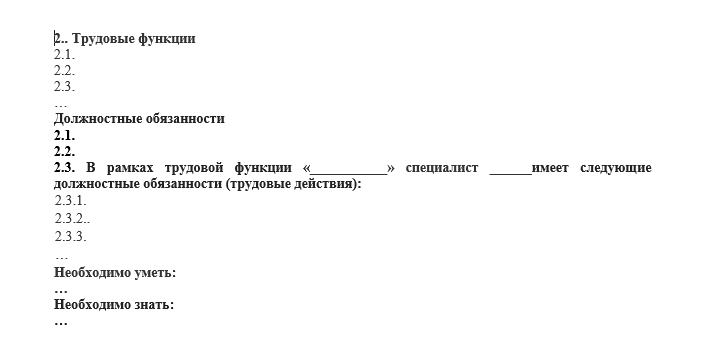 Раздел должностной инструкции имеет следующую структуру: