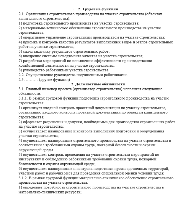 Принцип подготовки должностной инструкции главного инженера в бюджетной организации аналогичен. Для технического руководителя на стройке использование профстандарта, скорее всего, обязательно.