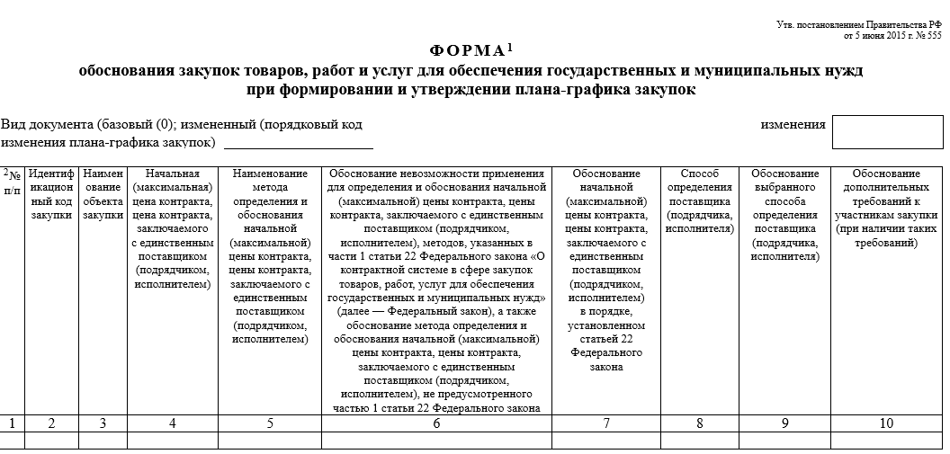 Обоснование закупочной деятельности регламентируется ПП РФ № 555 от 05.06.2015, которое утверждает правила и форму.