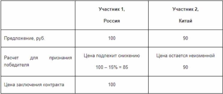 Победителем будет признан участник, который поставляет бумагу российского производства, к его ценовому предложению применяется понижающий коэффициент. Для электронного аукциона действует другой механизм. Победителем признается участник, который больше всех снизил цену в ходе торгов. Дальше действует такое правило: если победитель аукциона поставляет бумагу, изготовленную в России, его окончательное ценовое предложение не изменяется. Если бумажная продукция произведена в иностранном государстве, окончательная цена снижается на 15%.