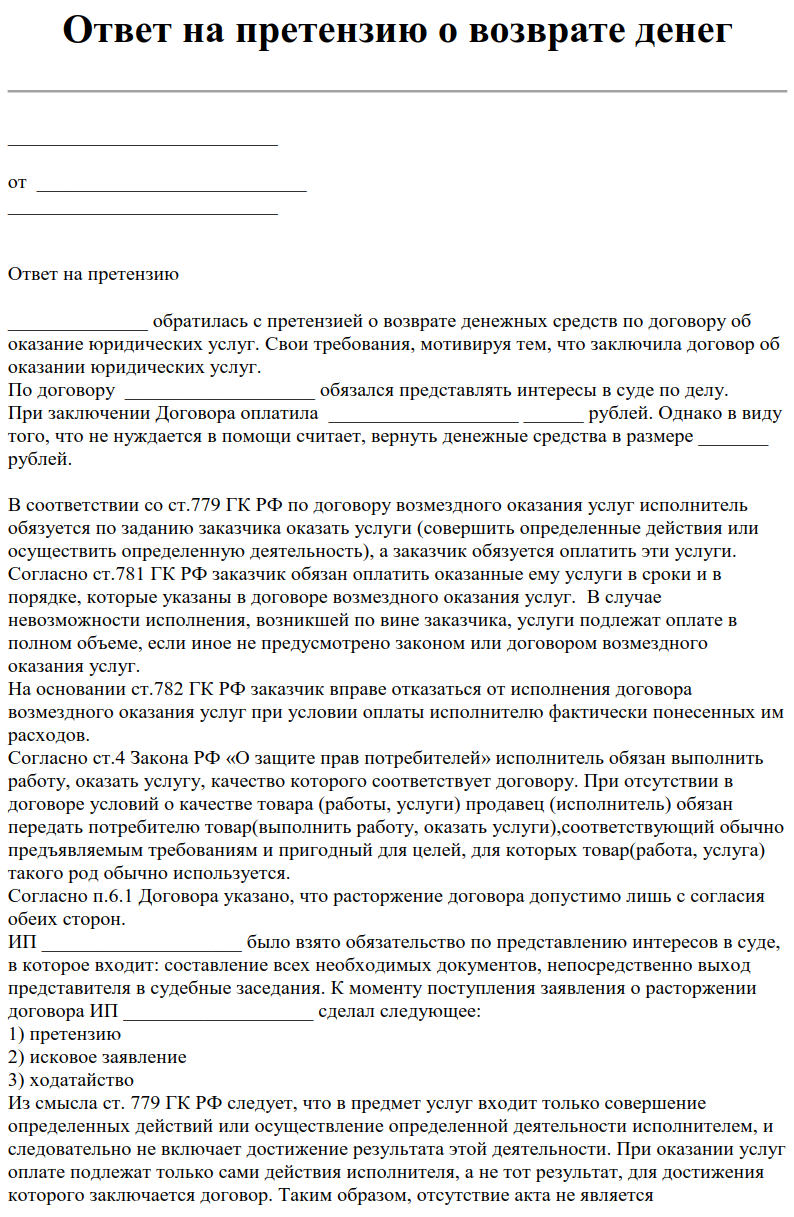 - нарушение сроков оплаты — претензионное требование к заказчику;