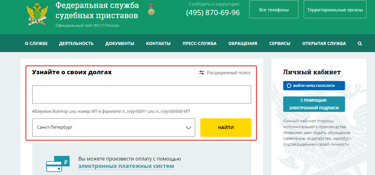 - на главной странице сайта ФССП;