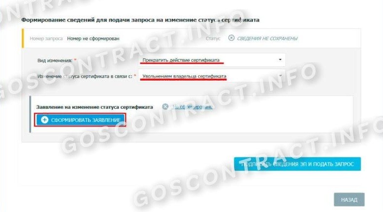 Шаг 3. Формируем заявление об изменении электронной подписи и заполняем все ячейки. Обязательно укажите формат изменений и основание для таких действий.