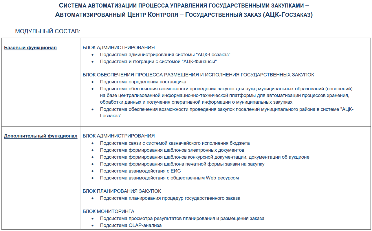 Для этих целей введена в действие двухуровневая система «АЦК-Госзаказ» («АЦК-Муниципальный заказ»).