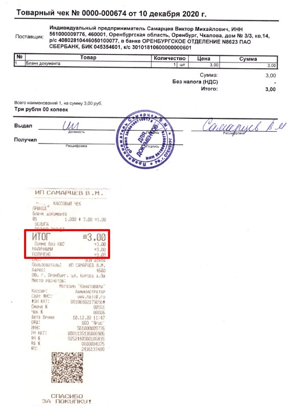 А так выглядят платежные документы — товарный и кассовый чеки. Они подтверждают факт оплаты поставщику.
