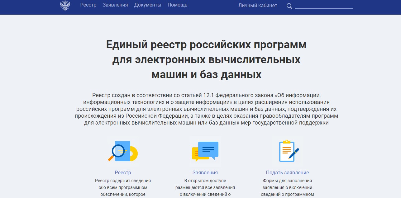 Он является ответвлением официального сайта Минсвязи РФ. Для того чтобы воспользоваться перечнем, заказчику необходимо выйти на официальный сайт Минсвязи и перейти во вкладку «Реестр».