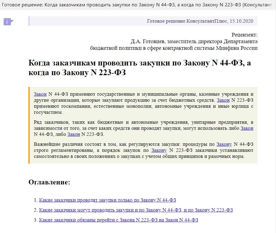 Остались вопросы? КонсультантПлюс подготовил готовое решение о правилах работы заказчиков по 44-ФЗ и 223-ФЗ и переходе с одного закона на другой.