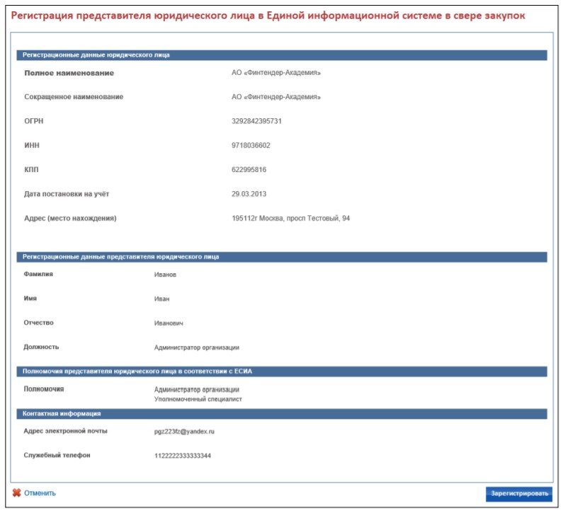 Сам реестр представляет собой совокупность данных о зарегистрированных юридических лицах с указанием следующей информации о заказчиках: