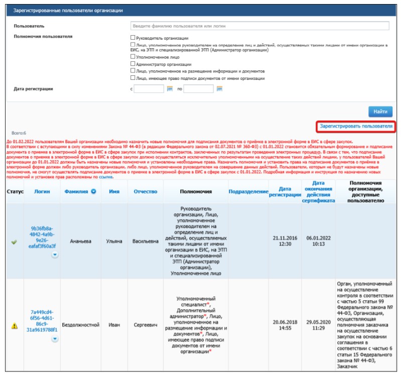 Инструкция по регистрации и перерегистрации уполномоченных лиц организации в ЕИС: