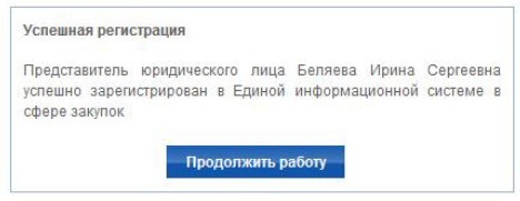 После завершения процедуры пользователю приходит сообщение об успешной регистрации по № 223-ФЗ.