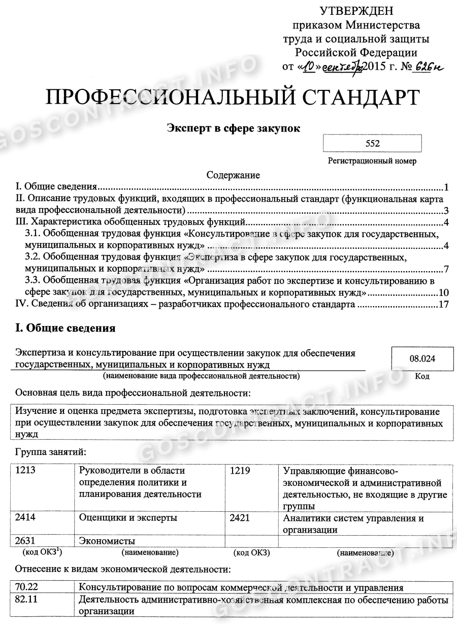 Понятие о профессиональном стандарте появилось в Трудовом кодексе в 2012 г. На основании Правил стандартов, которые утверждены Постановлением Правительства № 23 от 22.01.2013, Минтруд разработал и ввел в действие Приказами от 10.09.2015 две специальности для работающих в сфере закупок: № 625н — профессиональный стандарт специалиста по закупкам, № 626н — эксперта.