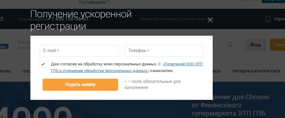 Регистрационная заявка рассматривается в период, не превышающий 5 рабочих дней с момента принятия оператором документов и регистрационных данных. Результатом рассмотрения заявки будет получение на активированный e-mail адрес уведомления о регистрации либо об отказе в аккредитации. Если пользователю нужна срочная регистрация, можно ускорить ЭТП ГПБ аккредитационную процедуру.