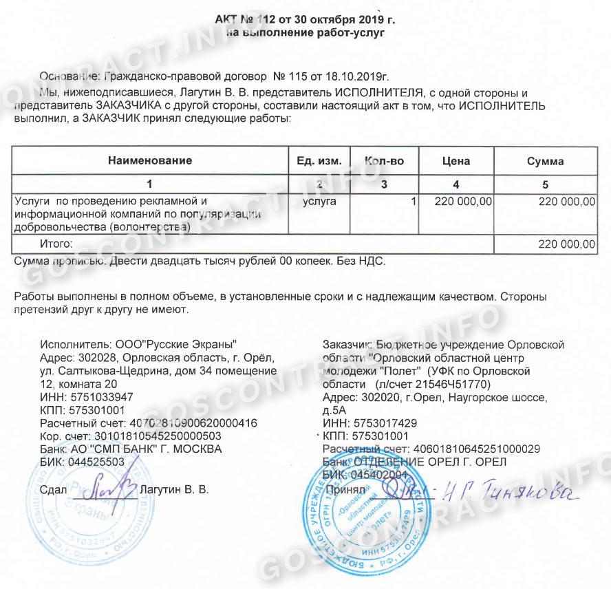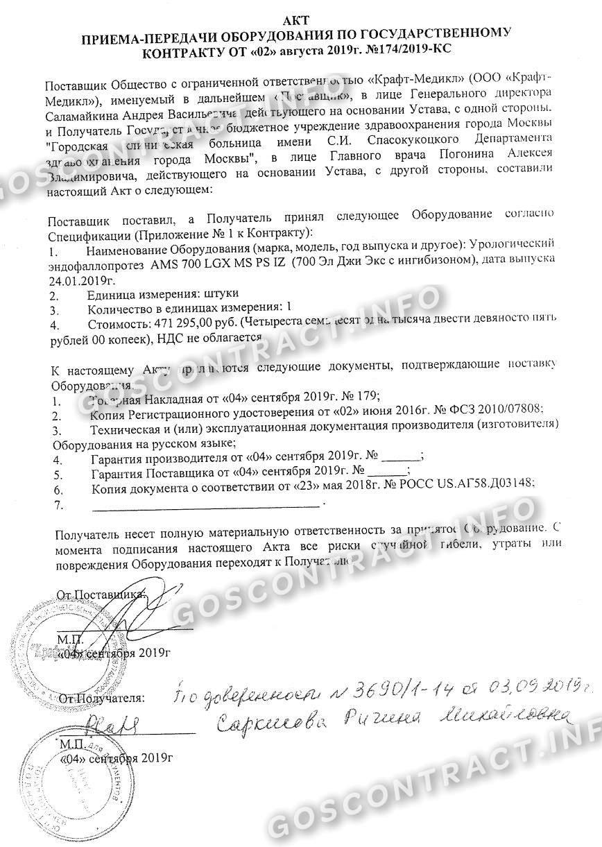 Контракт заключили в 02.08.2019. Акт приема-передачи опубликован в ЕИС 15.10.2019 и сейчас товар полностью оплачен заказчиком.