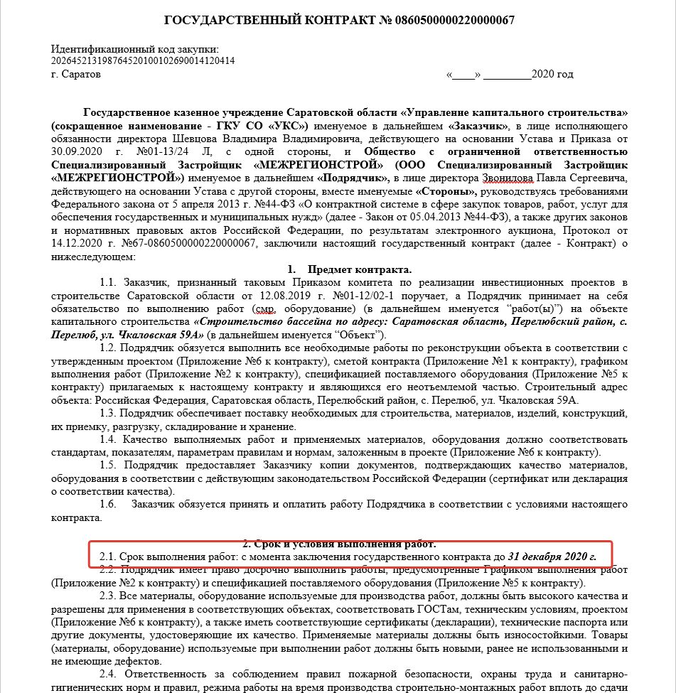 А единственным камикадзе стало общество с ограниченной ответственностью Спецзастройщик «МЕЖРЕГИОНСТРОЙ», которое рискнуло построить бассейн за неделю, т. к. по состоянию на 21.12.2020 контракт еще не заключен, а работы нужно сдать до конца года. Видимо, у них работает сама Золушка. Только она способна за одну ночь перемыть всю посуду, натереть полы, наколоть дров на месяц, намолоть кофе на год, вырастить 40 розовых кустов, протоптать новые дорожки и успеть покутить на королевском балу. Что ей стоит за неделю бассейн построить?