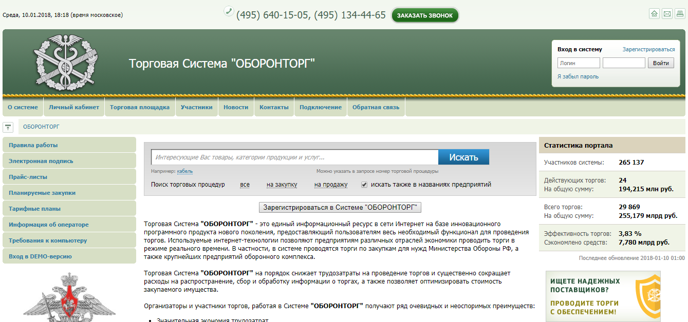 «Оборонторг» — электронная система для проведения закупок предприятиями оборонно-промышленного комплекса.