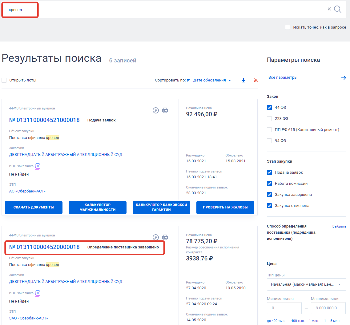 Например, если реализуете мебель, находите тендер, в котором хотите поучаствовать в настоящее время.