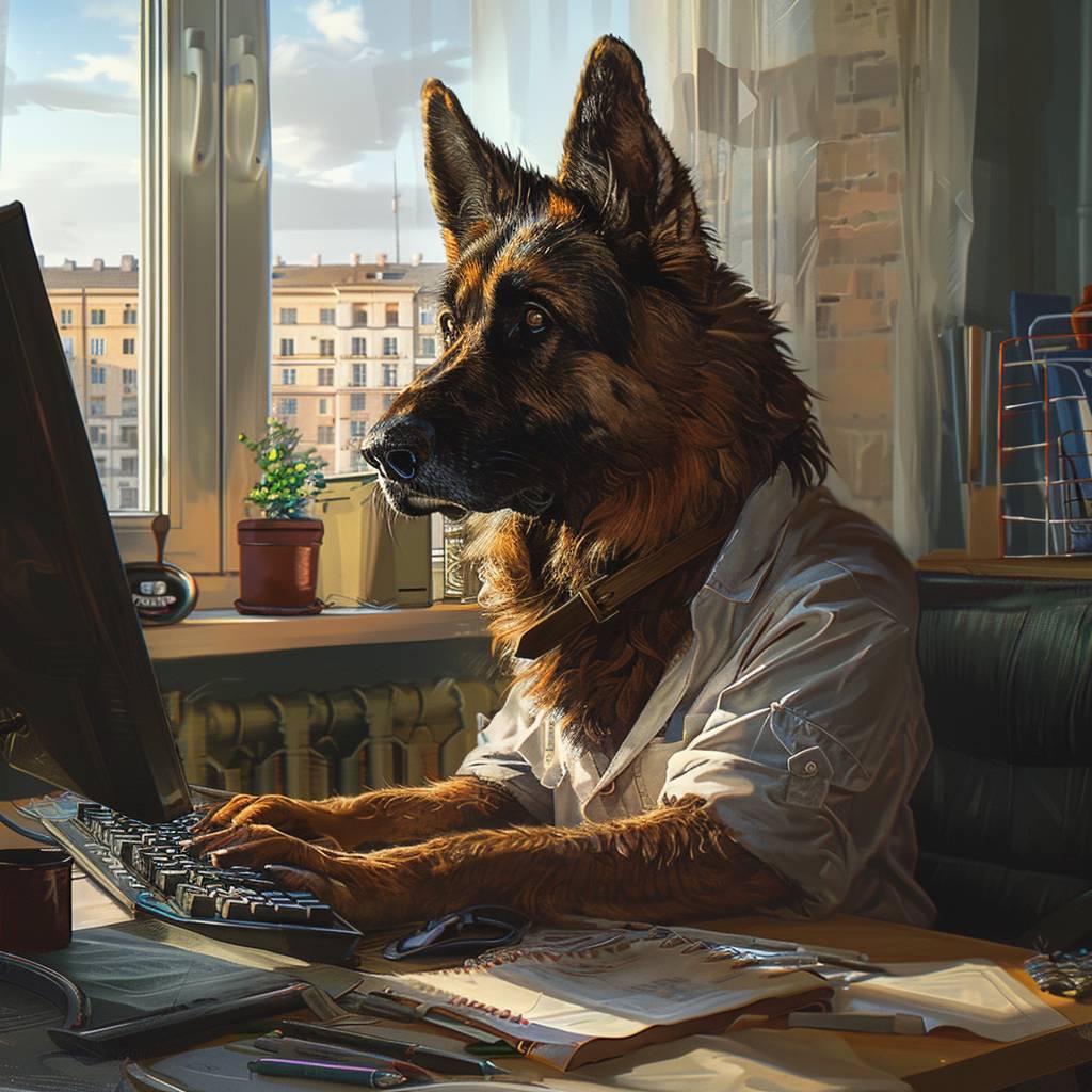 И вот наш еж-шутник Помпоний скрытно наблюдает за всей этой оживленностью из-под стола, дописывая очередной юмористический отчет о жизни офиса, где каждый сотрудник — уникальная собака своей породы, вносящая вклад в общее дело.