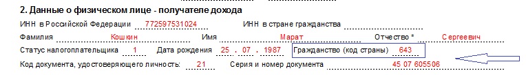 Еще одним новшеством в бланке стало исключение из него адресных данных налогоплательщика. Теперь в форме 2-НДФЛ за 2017 г. больше не нужно указывать даже код страны проживания. Остались только сведения о гражданстве и данных документа, удостоверяющего личность. Нужно указать его код (паспорт обозначают «21»), серию и номер. Дату выдачи указывать не нужно.