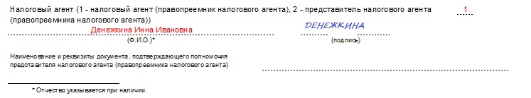 В конце заполненную справку 2-НДФЛ, как и раньше, должен заверить своей подписью руководитель компании — налогового агента или уполномоченное лицо (по доверенности). В первом случае ставится код «1», а во втором — «2». Если форму подписал представитель, нужно указать реквизиты документа, удостоверяющего его полномочия.