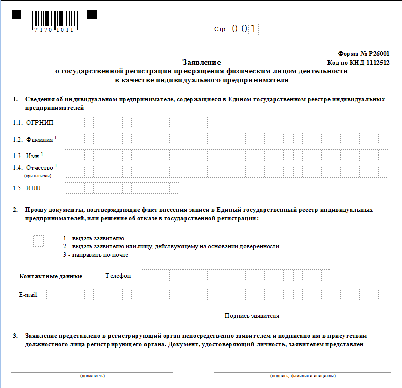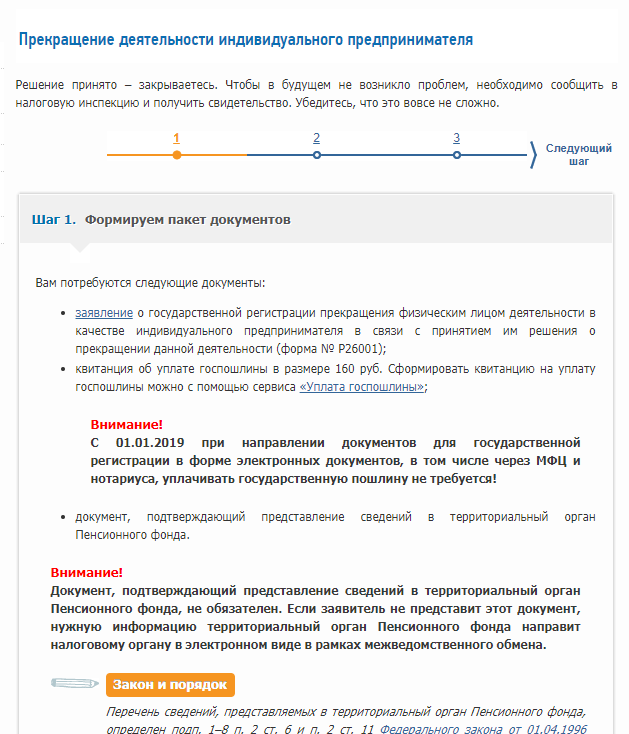 Заяление по форме Р26001 вы можете скачать на сайте Федеральной Налоговой Службы. На этом же сайте есть возможность заплатить госпошлину за закрытие ИП в режиме on-line. Если вы предпочитаете оплачитвать госпошлину наличными средствами, будет сформирована квитанция на оплату госпошлины на закрытие ИП. Рассмотрим более подробно размер и порядок оплаты госпошлины.