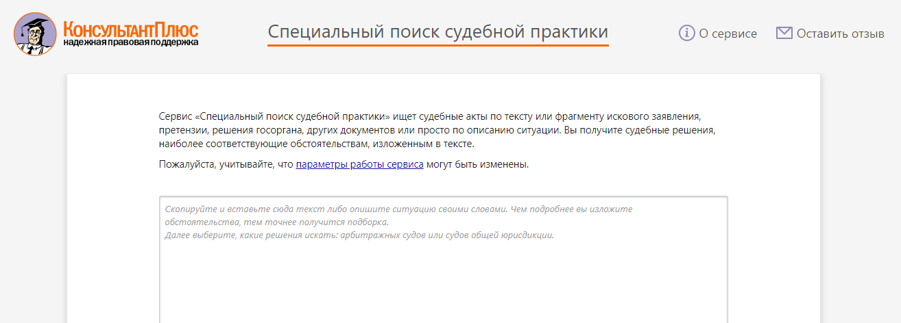 Ищете судебное решение? Используйте базу судебной практики в КонсультантПлюс (бесплатный доступ к ней получите, перейдя по ссылке ниже). В базе собраны решения всех российских судов, а поиск такой же простой, как в Яндексе.