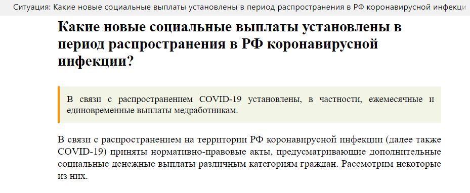 Какие еще выплаты может получить медработник из-за коронавируса — узнайте бесплатно в обзоре от КонсультантПлюс. Эксперты разобрали, что полагается не только врачам, но и работникам других сфер и обычным гражданам.