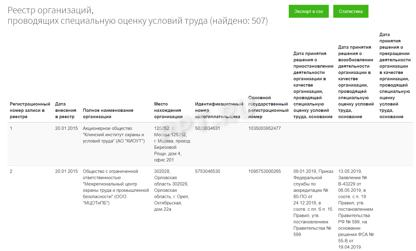 По закону о СОУТ (ФЗ 426, приказ 33 от 24 января 2014 года с комментариями), процедура спецоценки инициируется работодателем, но саму проверку проводит организация, которая имеет на это право. Перечень предприятий, получивших соответствующие разрешения, доступен на сайте Министерства. Там можно получить все координаты потенциального исполнителя и выбрать оптимальный вариант для конкретной ситуации (в 2020 году таких организаций в реестре насчитывается 507).